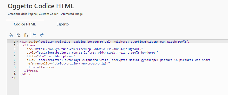 il codice inserito sull'oggetto HTML l'ho prelevato già pronto da youtube basta sciegliere incorpora