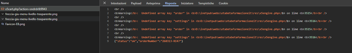 Relativamente al Generic Error, sono visibili alcuni Warning di PHP ispezionando la pagina.