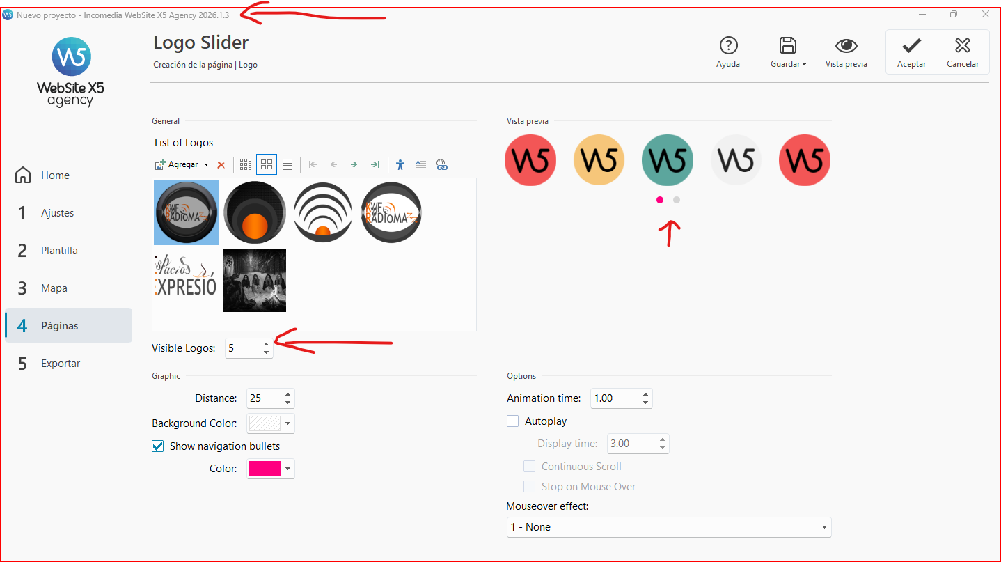 Confermo: quando aggiungo 6 immagini e imposto il parametro su 6 loghi visibili, compaiono 4 punti di navigazione e l'ultimo è vuoto... ma quando imposto i loghi visibili su 5, il quarto punto di navigazione mostra altri due punti di navigazione, come un'immagine... vedi screenshot. (visualizzato su un telefono Android).