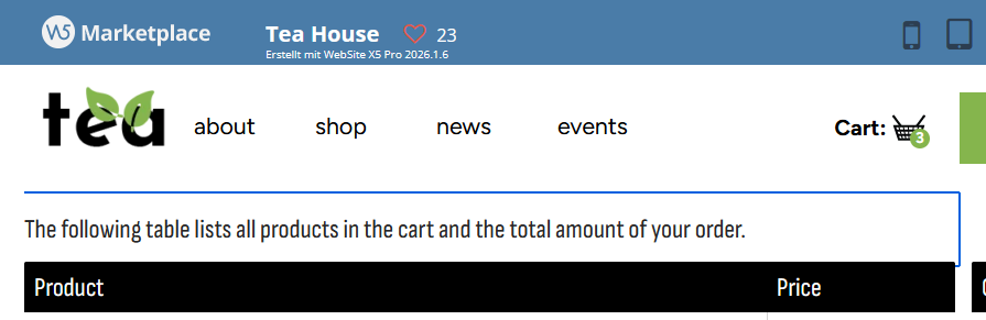 Beim kostenpflichtigen Template "Tea House" tauchen auch Fehler auf, siehe Screenshots unten