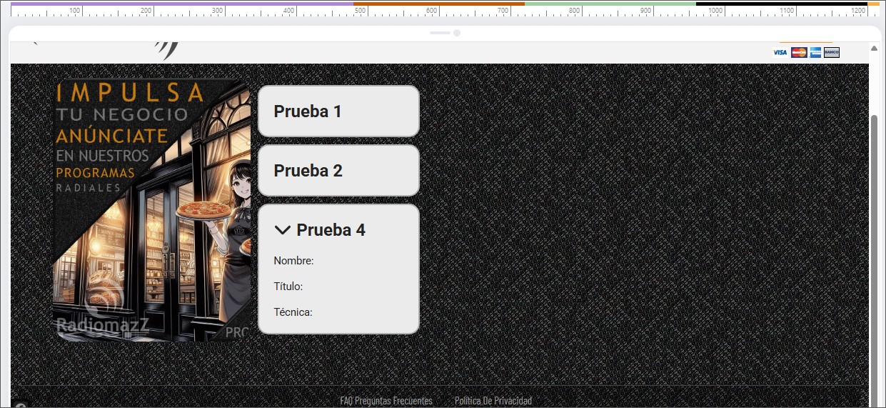Ho recentemente acquistato il nuovo oggetto Accordion Image e presenta diversi bug. Ad esempio: quando lo aggiungo a progetti esistenti, viene visualizzato come un unico blocco, ovvero la casella di testo è in alto e l'immagine in basso. Non importa se occupa l'intera larghezza della pagina o metà; non cambia affatto.