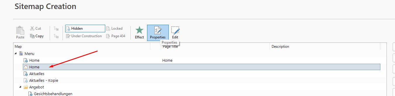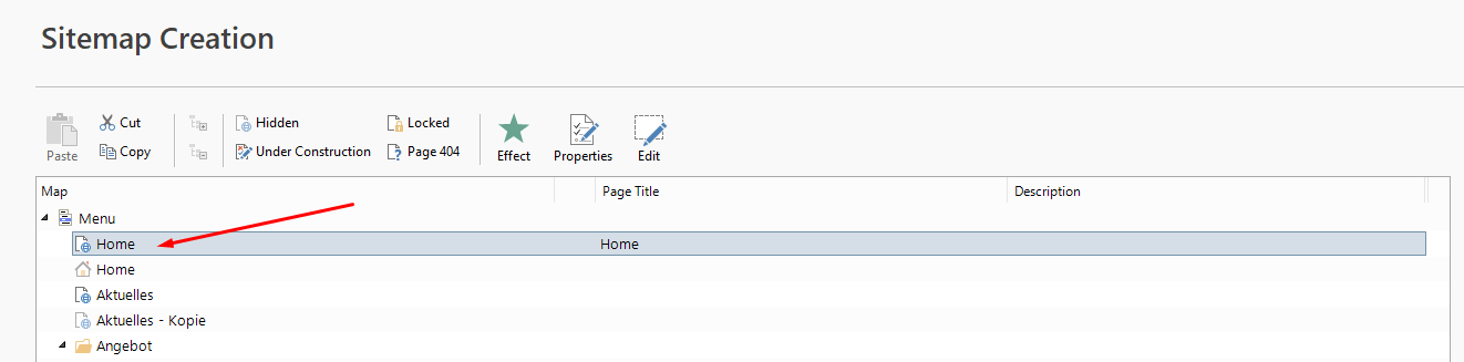 Sie sollten die erste Seite in etwas anderes als „index“ umbenennen und diese Seite auf „versteckt“ setzen. Gleichzeitig deaktivieren Sie die versteckte Funktion für die tatsächliche Startseite und die Funktion zum Umbenennen, sodass diese automatisch den Namen „index“ übernimmt anstelle der anderen Seite.