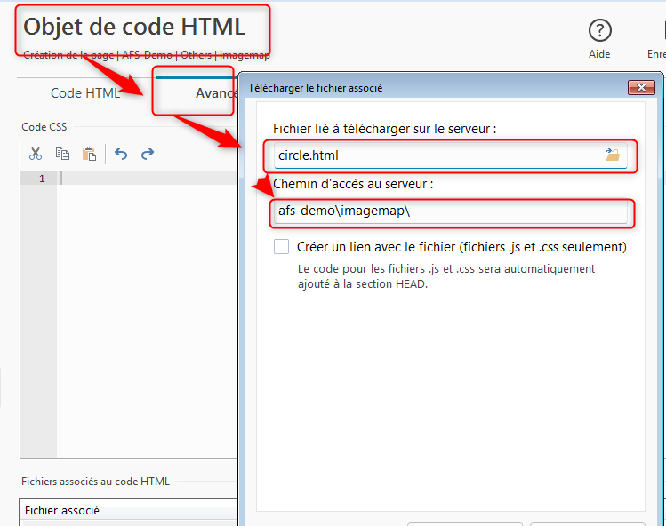 The previously choosen directory will be need to exported to your web site with the files too. So to do that you need to use the advanced tab into you HTML object like: