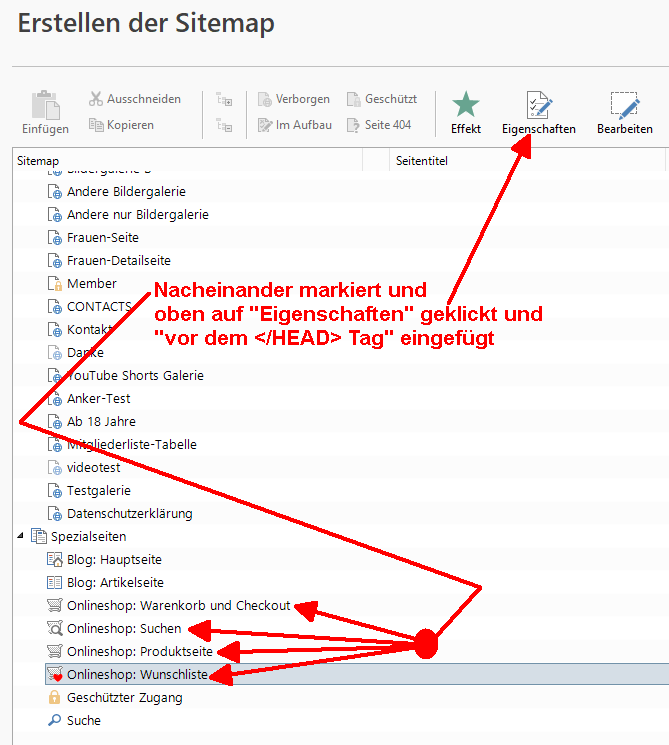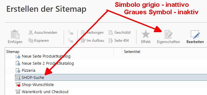 >> Schritt 3 - Sitemap > 'Eigenschaften der Seite' Fenster > Funktionen im Bereich Erweitert >