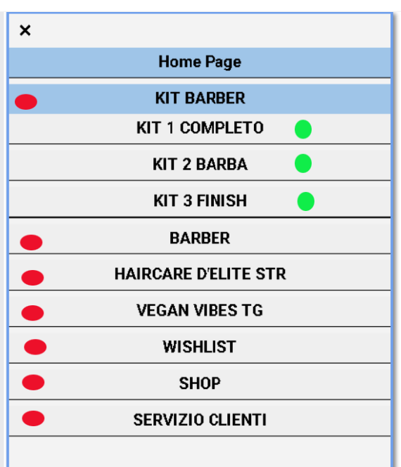 NELLA FOTO LE VOCI CON IL PALLINO ROSSO STANNO AD INDICARE I LINK DELLE CATEGORIE MENTRE QUELLE VERDI SONO LE VOCI CHE STANNO NELLA CATEGORIA ATTIVA.
