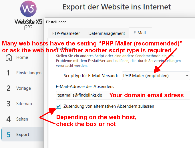 Many web hosts have the setting “PHP Mailer (recommended)” or ask the web host whether another script type is required.