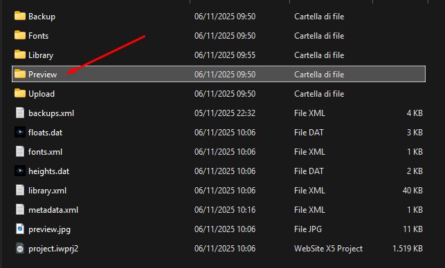 Chiudi WebSite X5, procedi alla cartella del tuo progetto e, al suo interno, in Preview e poi res, e inserisci qui il file in questione, poi tenta nuovamente di aprire il progetto.