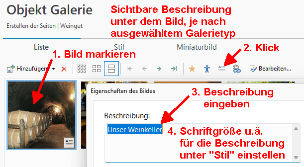 Normalerweise kann jedes Bild einzeln beschriften werden, siehe die 3 Screenshots unten