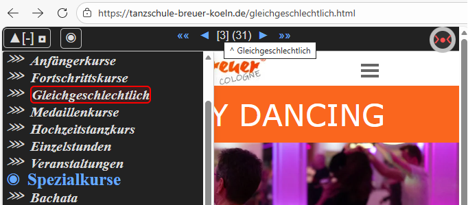 4) - Der Hauptvorteil: Um zu einem Abschnitt oder einer Ebene zu navigieren, klicken Sie einfach auf „Vorwärts“ oder „Zurück“, ohne jedes Mal das Menü öffnen, suchen, die Ebene und dann die Seite aufrufen zu müssen – drei Klicks weniger.