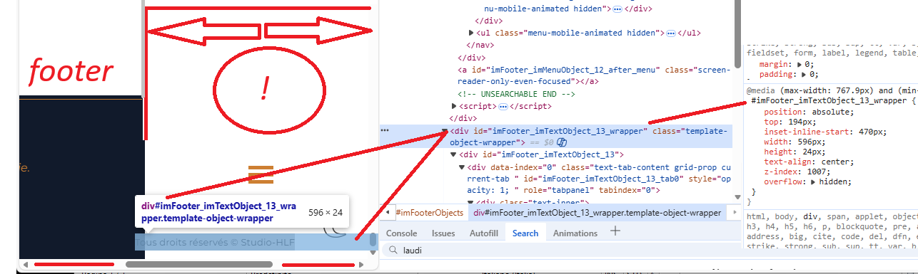 ... Concernant la mise en page incorrecte, veuillez vérifier tous les objets à toutes les résolutions, breakpoint par breakpoint, notamment dans l'en-tête (HEADER) et le pied de page (FOOTER)...
