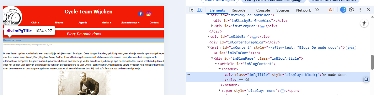 From the blog's main page, I access the blog article page. I've added the blog title in a separate red line. However, the blog title is also placed just below that. So, it's there twice now. I want to remove it. The object name of the title that needs to be removed is imPageTitle. My question is, can this title be removed with code? If so, what is the code? And where do I put it?