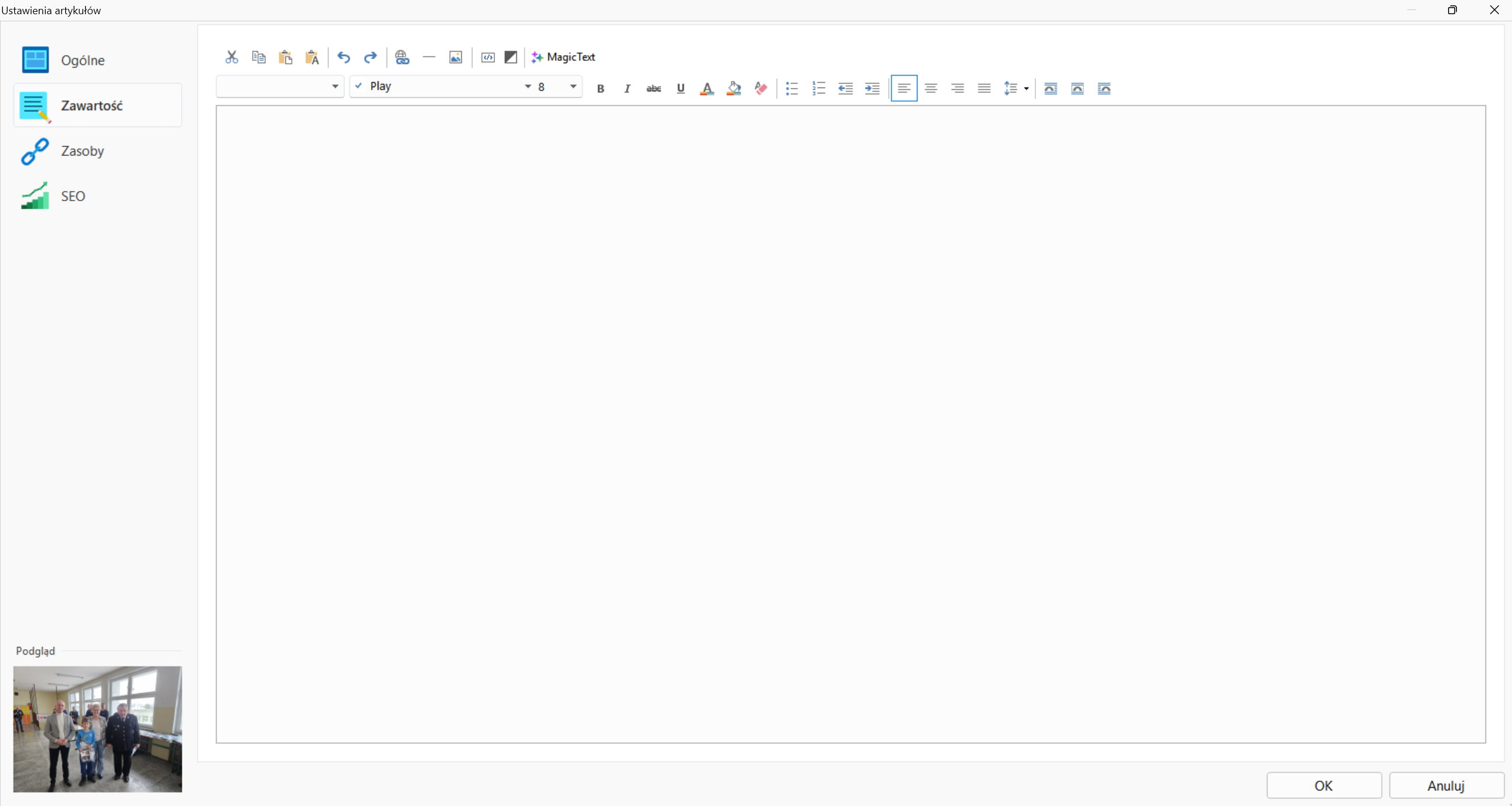 Brak możliwości uzupełniania pola treść w blogu. Nie można włączyć podglądu strony. Problem z dodaniem galerii. W zeszłym tygodniu było wszystko OK a teraz klapa:(