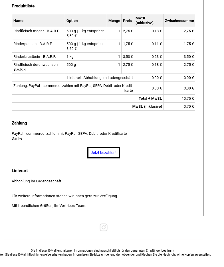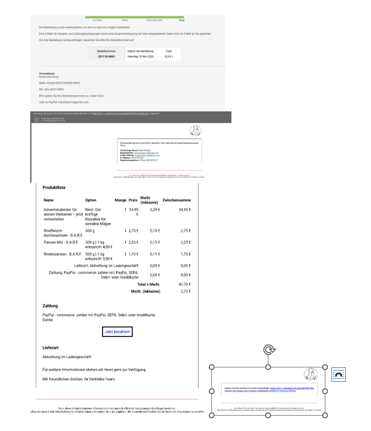 Bitte versuchen Sie, in der von mir als Test exportierten Version eine Bestellung aufzugeben, um zu sehen, ob die E-Mail von dort gleich aussieht: