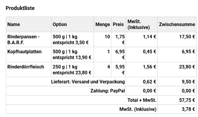Auf dem Screenshot ist es nicht zu erkennen: Ist der Text der E-Mail unterhalb der Produktliste ebenfalls fettgedruckt, oder ist er stattdessen in normaler Schrift?