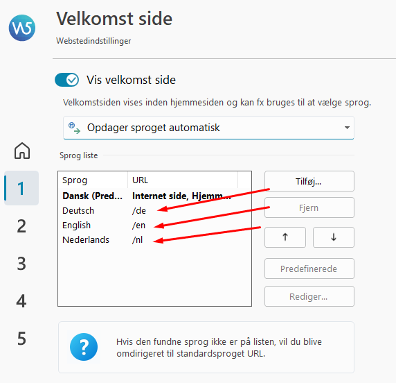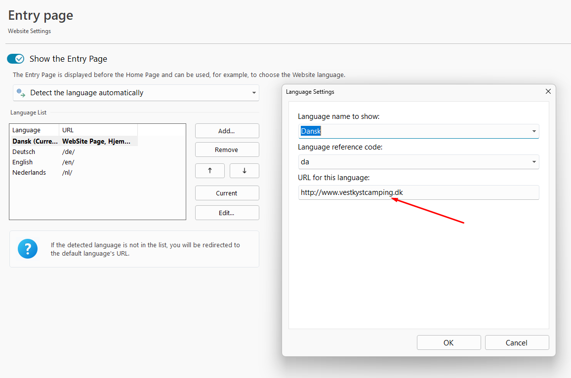 Die .dk Seite wird auf die /de geleitet und ist falsch eingestellt.