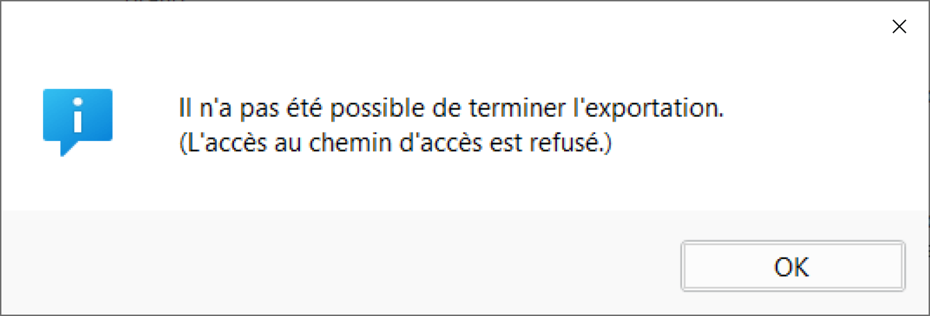 Impossible d'exporter une copie
