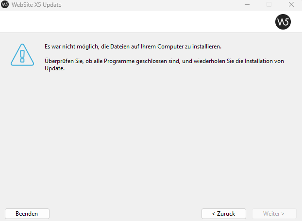 Update Website X5 Agency auf 2025.3.3 schlägt fehl