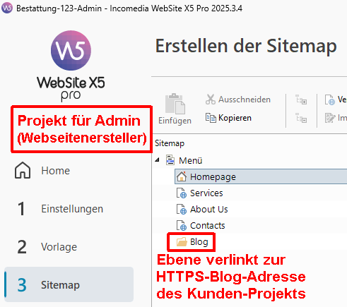 Wenn der Herr irgendetwas auf der Seite selber machen soll (außer Texte, Links und Bilder im Objekt "Dynamischer Inhalt" einfügen), dann wird er wohl den Umgang mit WebSite X5 lernen müssen, denn auch der Blog kann nur in WebSite X5 bearbeitet werden.