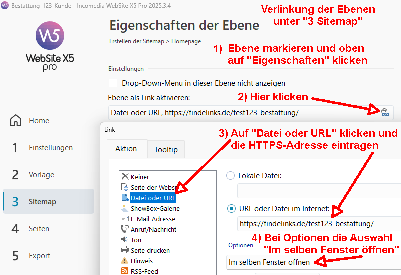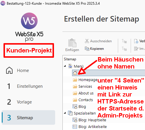 Da mein Bruder nicht mit WebSite X5 zurecht kam, obwohl er nur ab und zu eine neue Seite unter "3 Sitemap" hinzufügen, in diese ein Text- und ein Bild-Objekt hätte ziehen und mit Inhalt hätte füllen müssen, übernehme ich seit Jahren die Betreuung seiner Webseite.