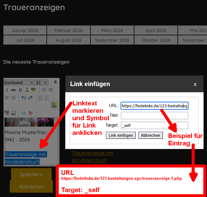 ... haben, da der Kunde diese Traueranzeigen selber verlinken und den Überblick behalten muss.