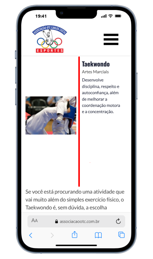 Aqui a tela na versão mobile, criei essa linha vermelha pra mostrar onde deveria ter uma quebra para visualizar a imagem acima e descrição abaixo.