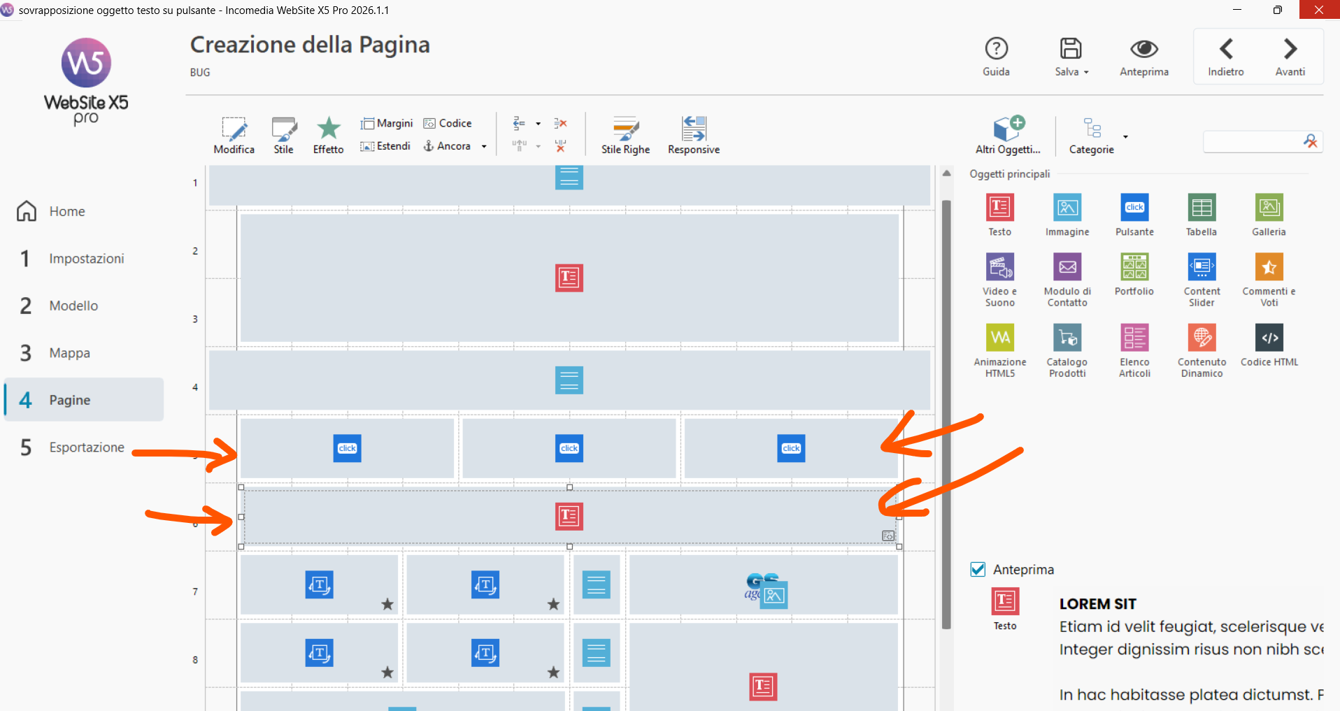 Bug Oggetto testo che si sovrappone a Oggetto Pulsante