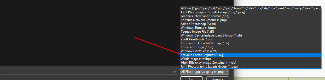 al usar un objeto de Imagen en el encabezado, el formato .svg ya está entre los compatibles, por lo que puedes usar un archivo con esta extensión.