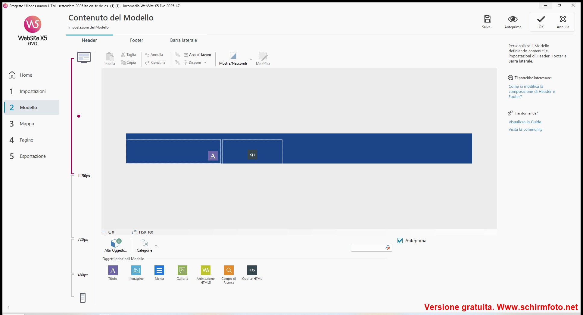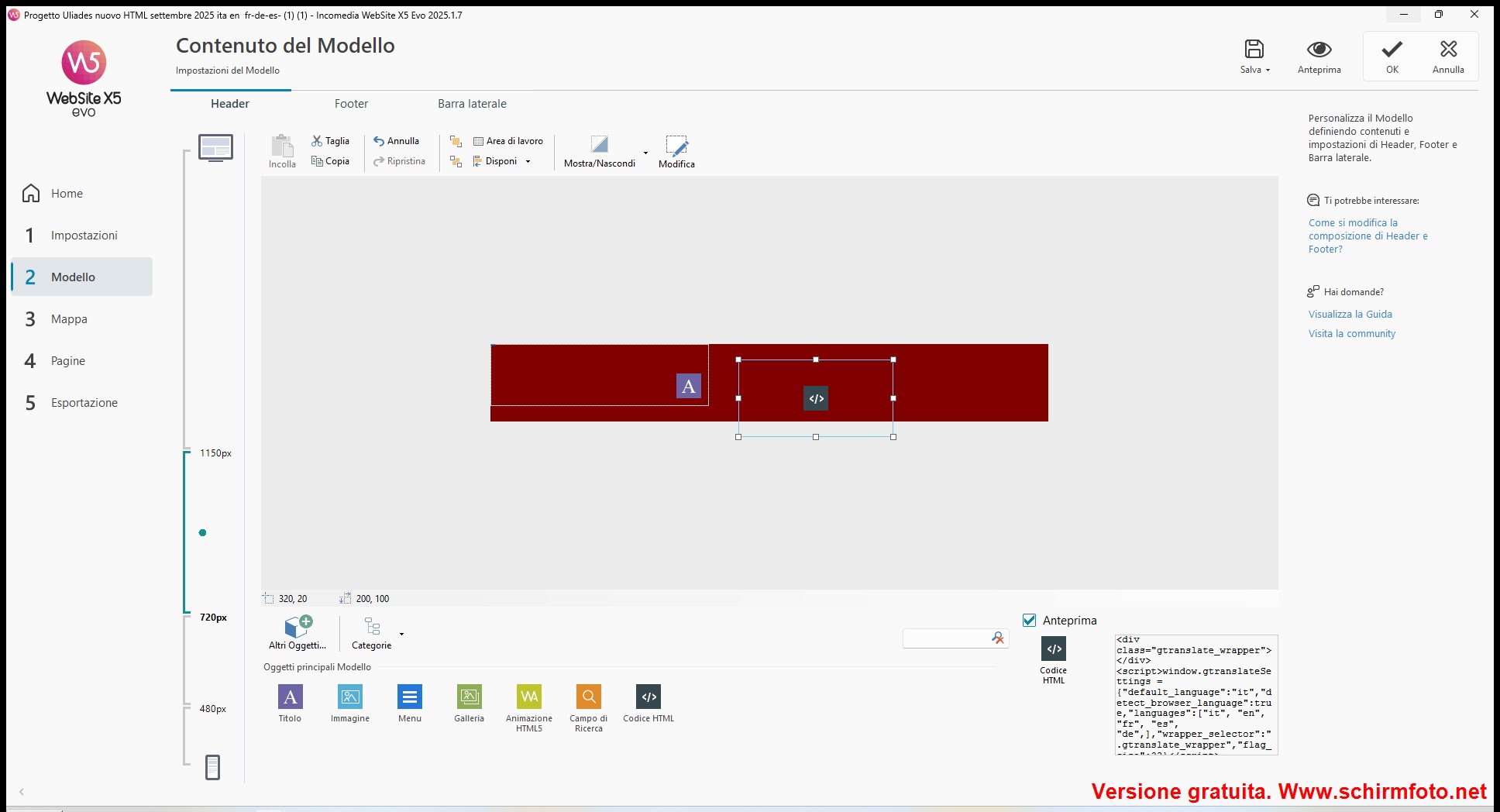In ogni caso fai doppio click sull'oggeto HTML, elimina tutto il codice presente einseriscici questo: