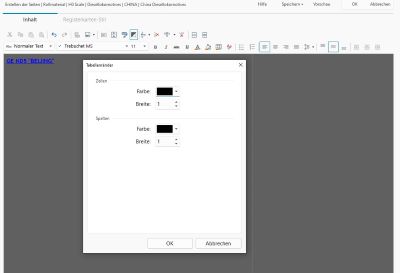 Man muss nach dem “BEARBEITEN” der Tabelle. Z. B. Beim Text einfügen oder Änderen. Die Rahmen Linien wieder ROT und die Spaltenlinie wieder BLAU machen. Ansonsten sind sie jeweils SCWARZ.