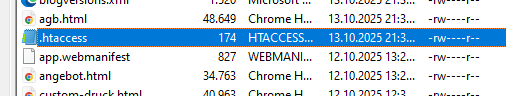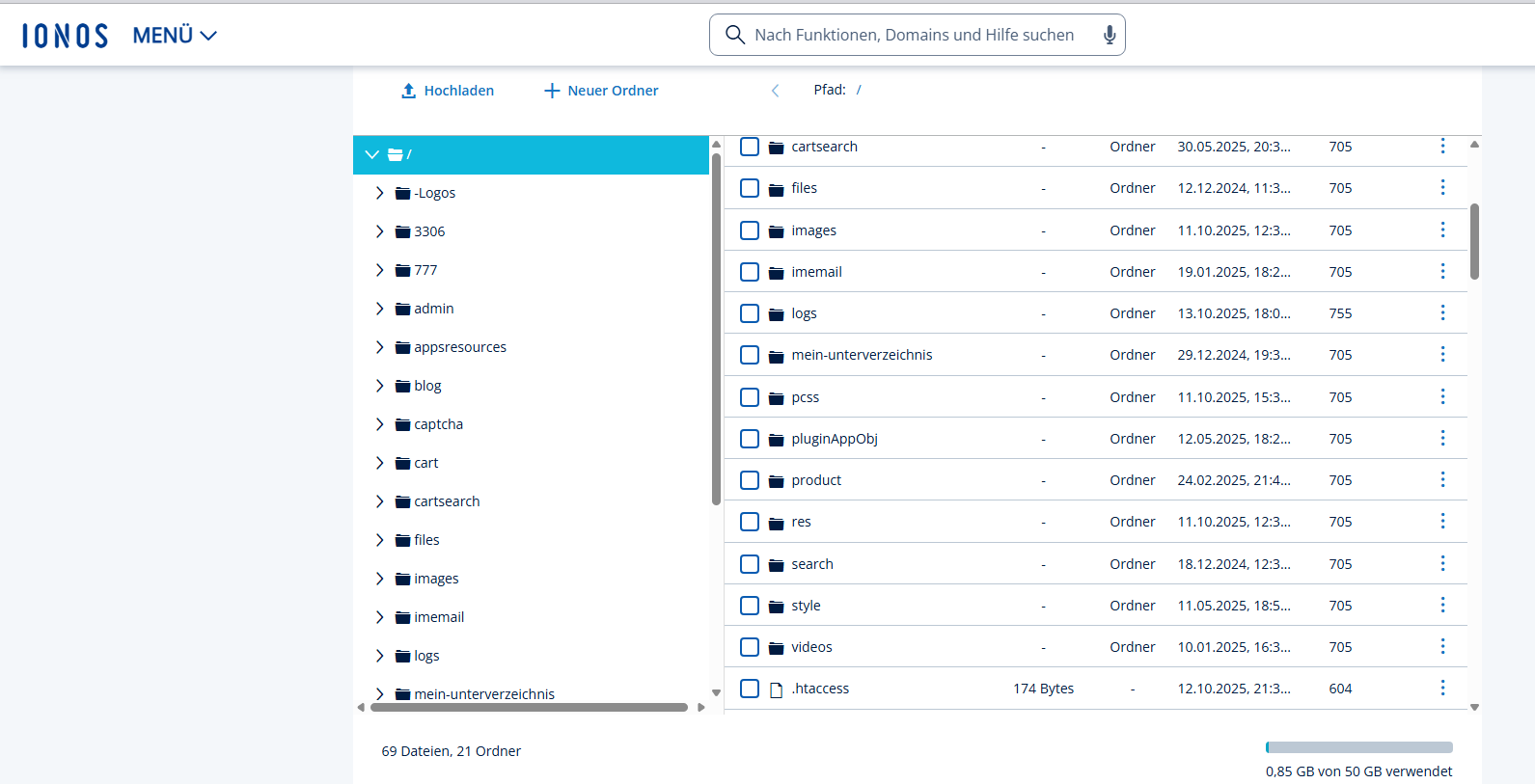 Im IONOS links ist die Datei nicht zu sehen. Aber rechts schon. Siehe Screenshot.