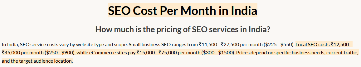 I did a Google search to see what SEO service providers in India charge, see screenshot.