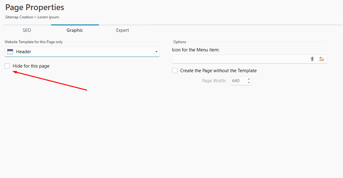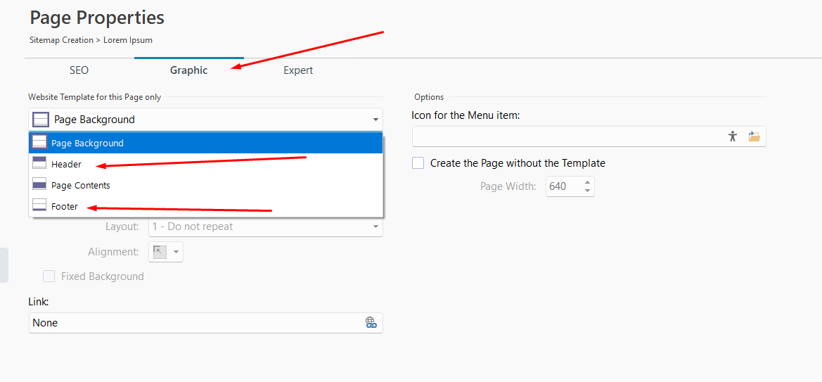 wenn Sie zu Eigenschaften → Grafik einer Seite gehen, können Sie auswählen, die Kopf- und Fußzeile für diese Seite wegzulassen.