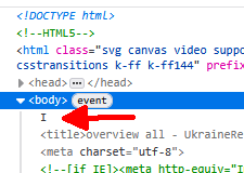 Da steht ein I einsam und allein zwischen <body> und <title> im weißen Streifen - siehe