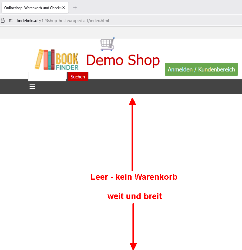 Shop getestet mit Firefox, Edge und Chrome, bei allen eine leere Warenkobseite.