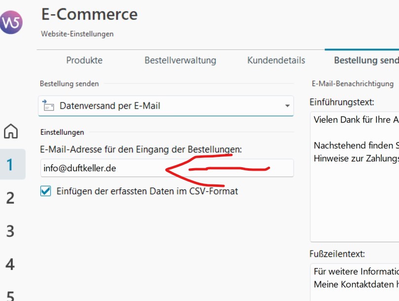 Auch der Weg in E-Commerce, Bestellung senden, über Versand an Datenbank bringt mich nicht weiter.