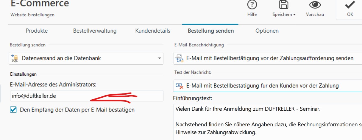 Der Kunde bekommt die Bestätigung seiner Bestellung, aber leider bekomme ich (als Admin) die Bestellung nicht zugesandt.