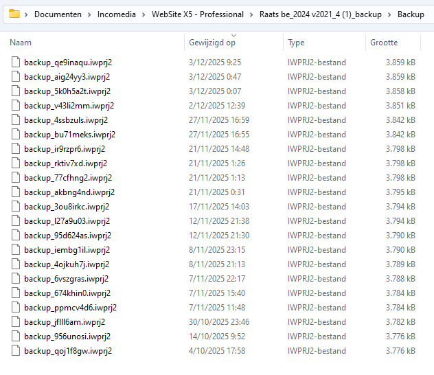 The specific location of the .iwprj2 files is F:\Users\Joris\Documents\Incomedia\WebSite X5 - Professional