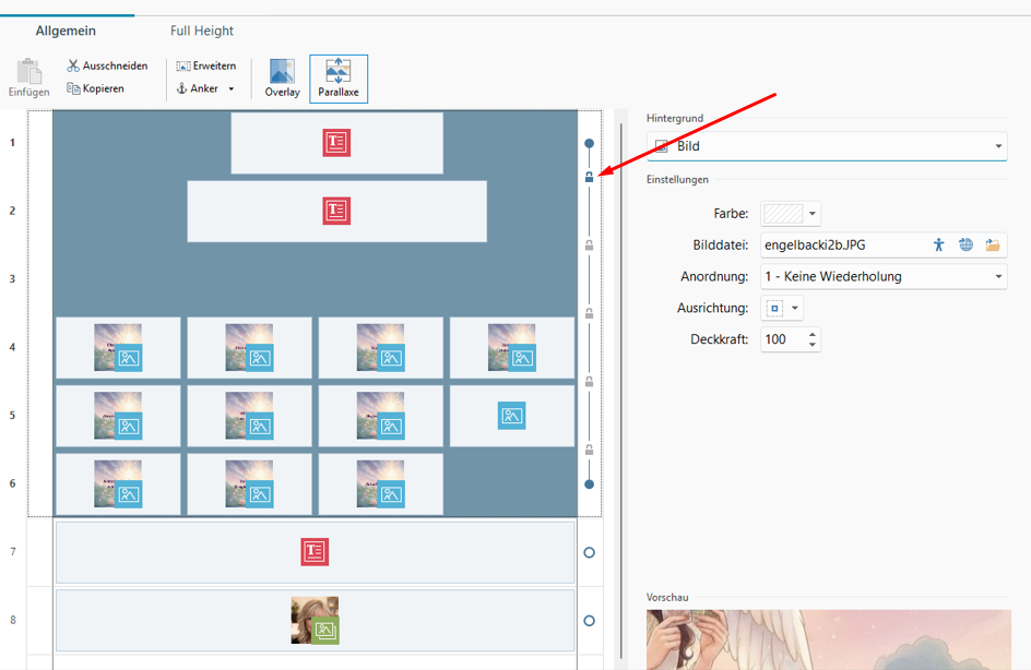 wenn Sie unterschiedliche Stile für diese Zeilen verwenden möchten, können Sie hier die Schloss-Symbole nutzen, um die Zeilen voneinander zu trennen, sodass nicht alle denselben Hintergrund verwenden.