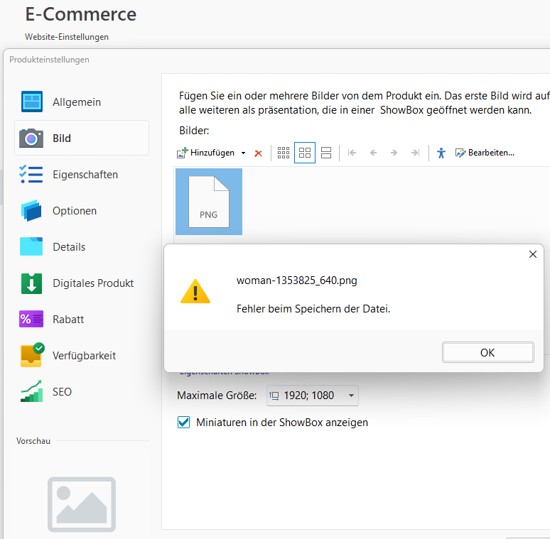 But an image is displayed in the preview, see screenshot (B)