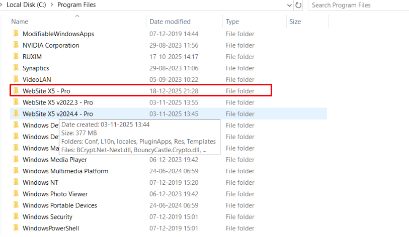 At the path C:\Program Files can the folder WebSite X5 – Pro be found?