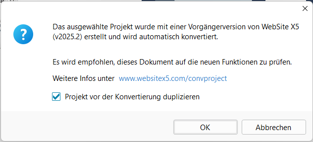 diese Warnmeldung bezieht sich auf die Erstellung einer Duplikatdatei im Zusammenhang mit einer Konvertierung in der aktuellen Version der Software und nicht auf die Erstellung eines regulären Backups. Je nach Grösse des Projekts, das konvertiert und gespeichert wird, kann dieser Vorgang daher gelegentlich mehr Zeit in Anspruch nehmen.